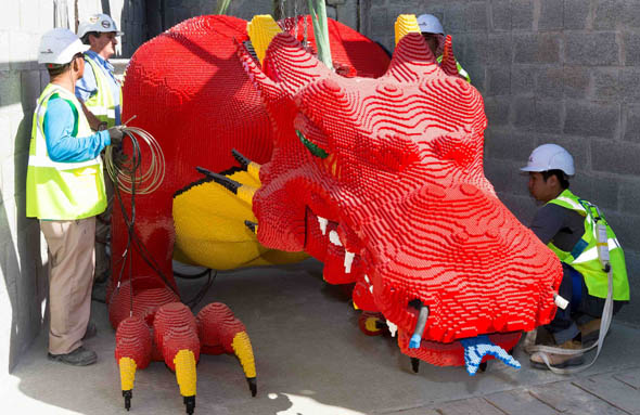 Az év második felében nyíló Legoland Dubai megkapta első lakóját, a több, mint 500kg súlyú, 230.000 legókockából álló hatalmas vörös sárkányt, mely nemcsak nagy, de mozog, világítanak a szemei és füst száll ki az orrlyukán. A sárkány lesz a Lego Királyság legnagyobb modellje, a király kincseit őrzi majd a kastély előtt.